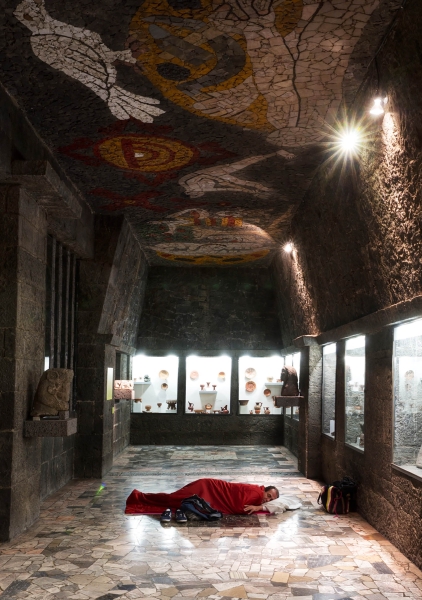 Los dibujos encapsulados no son más que bolas de cristal hechas a mano soplando vidrio con tinta china negra en su interior. Junto con ellas se adjunta un manual de instrucciones para que los coleccionistas se lo lleven a casa y lo tiren con fuerza sobre una pared liberando la tinta en la acción, y la acción se completa mandando a la galería una foto del resultado que el artista certifica como dibujo suyo. Habla de esa democratización y expansión del papel del artista. Un fluído encapsulado que se mueve toma la forma del recipiente que lo contiene. Está ahí, pero solo alcanza su destino cuando una fuerza lo libera y lo define. Un impulso rebelde, valiente e inaplazable provoca el cambio.
